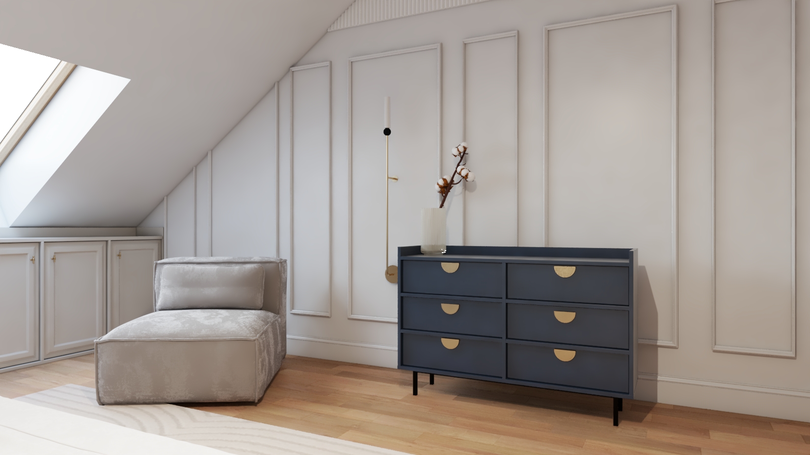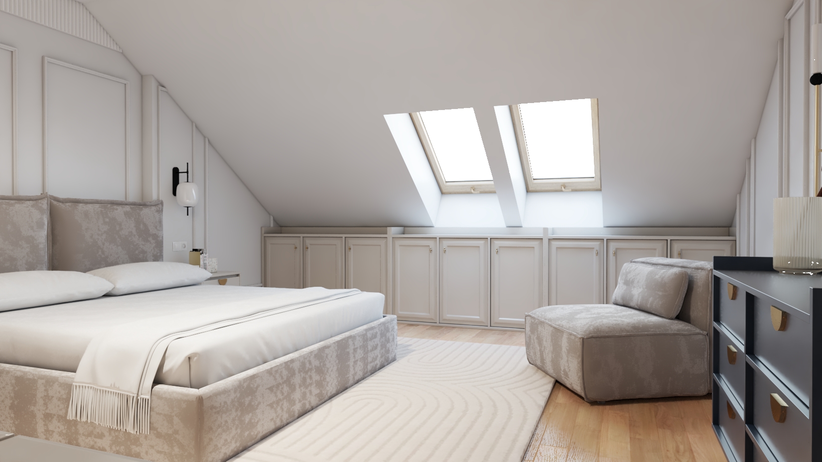 Mamy tu sypialnie która przejdzie generalny remont. Dodaliśmy zabudowę pod oknem, toaletkę dla Pani domu oraz dekoracyjna komodę z miejscem do odpoczynku czyli fotelem ✨🧖🏻‍♀️